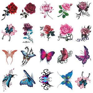 Realistische 3D-Tätowierung: Wir bieten eine Vielzahl verschiedener thematischer Muster an, darunter Blumen, Schmetterlinge und Federn, mit denen Sie Ihren Stil personalisieren können.