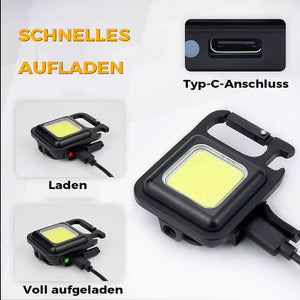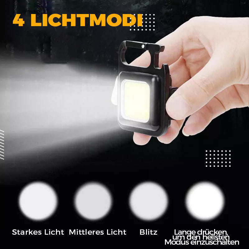 Das tragbare und einfach zu bedienende Mini Cob Schlüsselanhänger-Arbeitslicht ist eine perfekte Taschenlampe für Nachtwanderungen, Wanderungen, Angeln, Camping oder Notfälle.