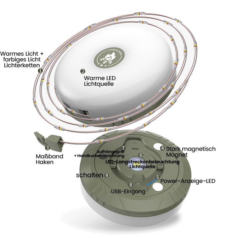 ◪Magnetische Vielseitigkeit: Befestigen Sie diese Campingzelt-Lichterketten sicher an jedem Eisengegenstand und genießen Sie eine schnelle und einfache Beleuchtung. Mit festem Griff und einem starken Magneten auf der Rückseite bietet es freihändige Beleuchtung, die perfekt für jedes Outdoor-Abenteuer ist.
