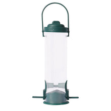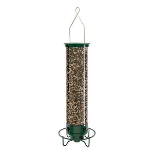 Der Rohr-Vogelfutterspender fasst bis zu fünf Pfund Vogelfutter und hat vier Futteröffnungen -
