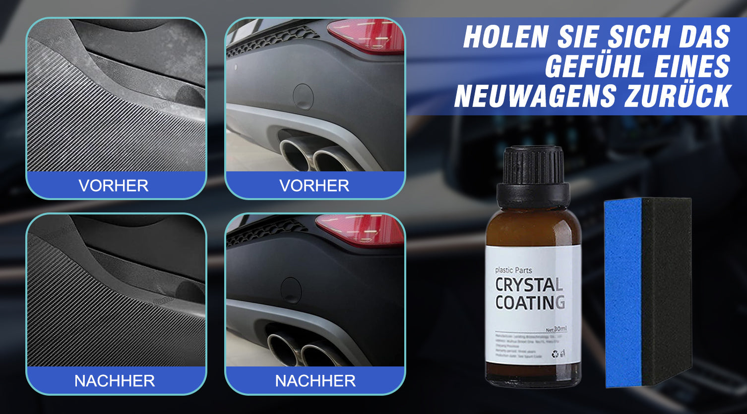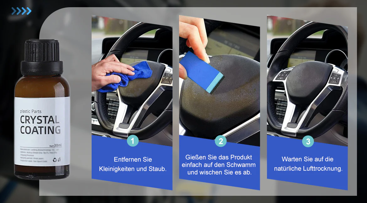 Der leistungsstarke Restaurator ist ebenfalls streifenfrei und hinterlässt nach dem Auftragen keine unschönen Rückstände auf Ihrem geliebten Fahrzeug. Mit einer Premium-Renovierungsformel, die Regen, Staub und Schmutz abweist, entfernt er hartnäckige Flecken, bewahrt den Glanz verblasster Kunststoffe und verhindert die Oberflächenalterung.