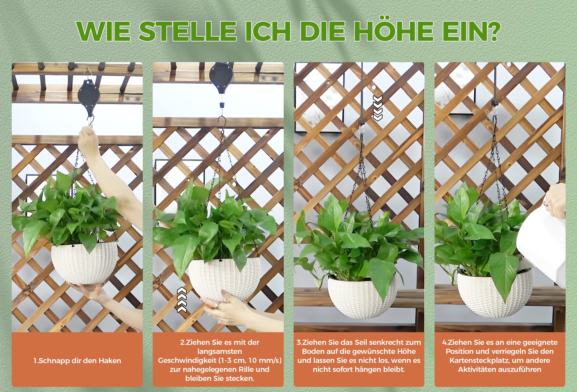 „Die Höhe der Aufhängung kann jederzeit angepasst werden, perfekt zum Aufhängen von Blumentöpfen, Vogelhäuschen und mehr. “