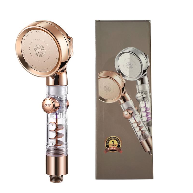 [Hochdruckdesign] Die Dusche verwendet das rotierende Rad, um einen unter Druck stehenden Wasserfluss zu erzeugen, der die Wasserflussgeschwindigkeit erhöht und dadurch den Wasserdruck erhöht. Geeignet für niedrigen Wasserdruck.