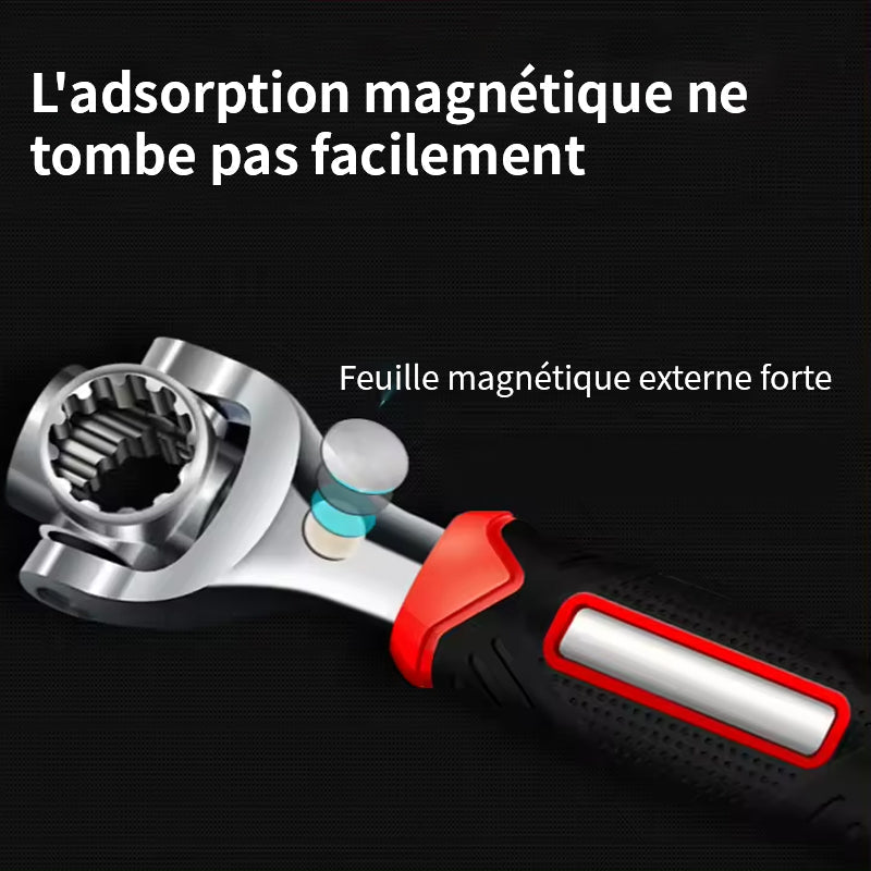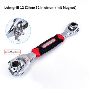 【48 IN1 WERKZEUG】Das einzigartige revolutionäre Zahndesign ermöglicht es Ihnen, sowohl Standard- als auch metrische Größen zu bearbeiten - drehen Sie einfach das Werkzeug um und Sie haben mehr Größen! Kein Herumschleppen von schweren Werkzeugkästen mehr.
