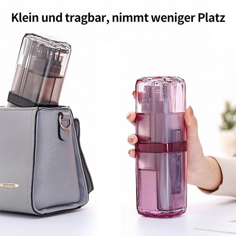 8 Toilettenartikel können komplett in einer Tasse enthalten. Das Reise-Behälter-Set enthält zwei Flüssigkeitsflaschen, einen Kamm, zwei Zahnbürstenbecher, ein Handtuch. Zahnbürste und Zahnpasta nicht enthalten.