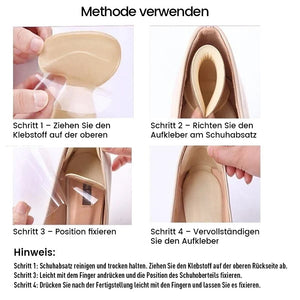 Dieses 3D-Fersenpolster wurde für eine schnelle Schmerzlinderung entwickelt und reduziert Stöße beim Gehen oder Stehen. Der weiche, federnde Fersenliner verhindert, dass Schuhe an Ihren Füßen reiben, und sorgt dafür, dass Sie sich nach einer Nacht mit High Heels unterstützt fühlen.