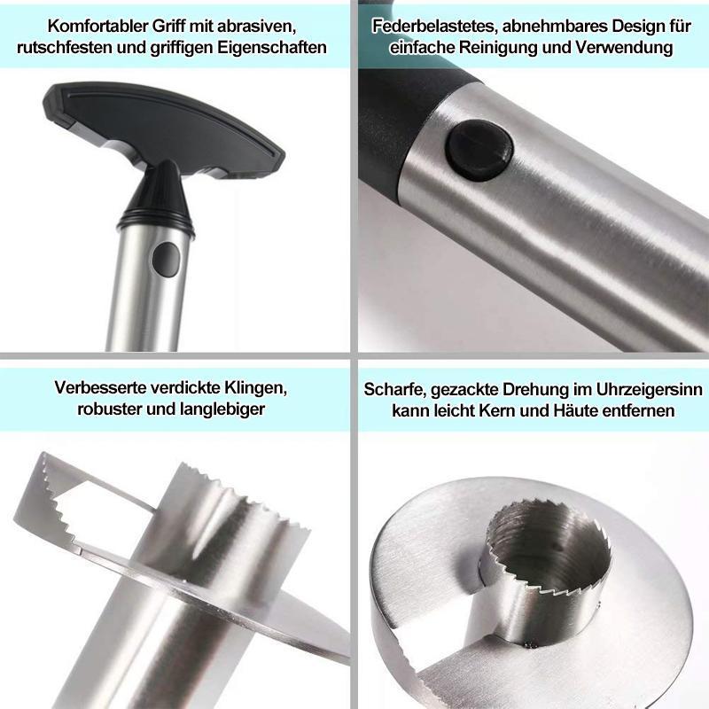 - Der Griff ist abnehmbar, um die Ananasringe leicht vom Werkzeug abziehen zu können