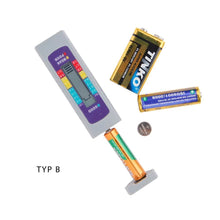 - Messbare Batterietypen: verschiedene Knopfbatterien, 5, 7, 9 V-Quadratbatterien usw.