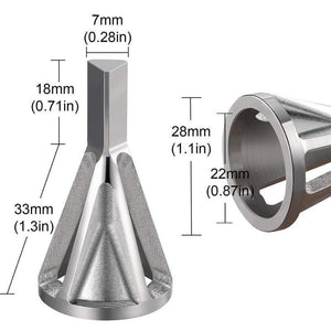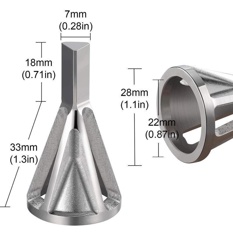 - ◆SCHNELL UND FEST: Durch das Entgraten des äußeren Fasenwerkzeugs kann die Spitze des zusammengedrückten oder rostigen Bolzens schnell an die konische Kante geschliffen werden, so dass die Mutter schnell festgezogen werden kann, ohne teure und schwer zu findende Befestigungselemente zu ersetzen Handhabung fester Schrauben, die nicht demontiert werden können.