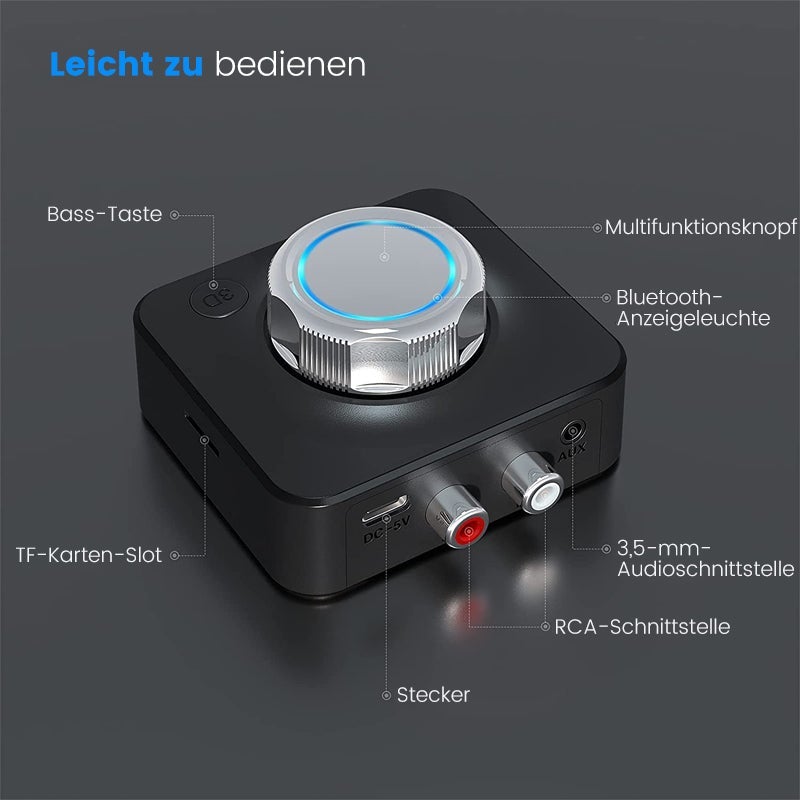 Kann Audio oder Musik drahtlos von Bluetooth-fähigen Smartphones, Laptops und Tablets an kabelgebundene Lautsprecher und Heimstereoanlagen übertragen;