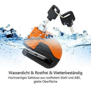 - 👍Dieses Bremsscheibenschloss ist aus rostfreiem Stahl gefertigt, zudem ist es sicherer und robuster. Mit wasserdichter Funktion arbeitet es problemlos in regnerischen Tagen und es wird niemals verrostet.