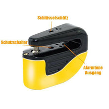 - 👍Der Bremsscheibenschloss Alarm ist eine praktische Lösung für Reiter, um ihre geliebten Motorräder oder Fahrräder zu schützen, während das Parken außerhalb oder zu Hause.