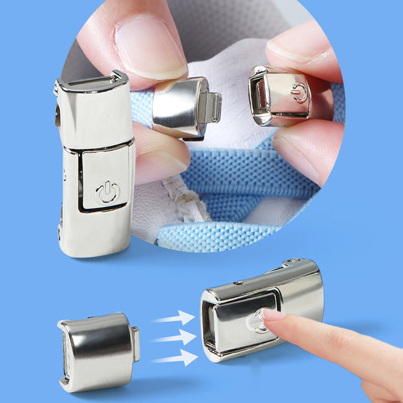 DESIGN DES SCHLOSSES - Der Knopf ist mit einem Federschloss versehen, nicht magnetisch, und der Schnürsenkel kann mit einem einzigen Klick gelöst werden, wodurch die mühsame Arbeit des Schnürsenkelbindens vermieden wird.