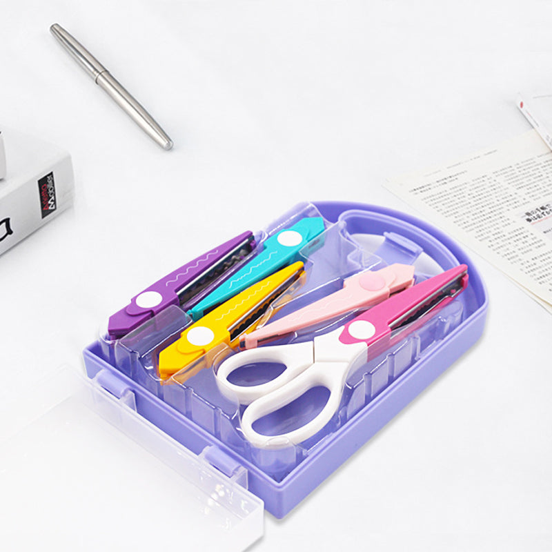 5 PAARE DEKORATIVES PAPIERKANTENSCHERE-SET - Mit 1 Griff, 5 schönen austauschbaren 2,5-Zoll-Schneideformen, phthalatfreien Kunststoffkomponenten und Edelstahlschneidkanten, gut für die Kunst- und Bastelarbeit von Kindern und Erwachsenen.