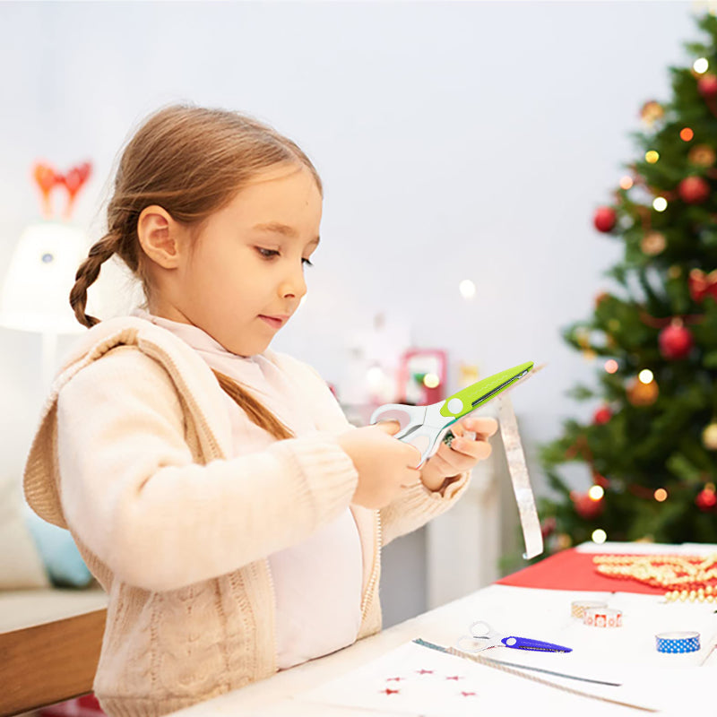 KUNST- UND HANDWERKSCHERE - Sowohl für die rechte als auch für die linke Hand geeignet. Die Schere schneidet Wellenmusterkanten oder unregelmäßige Stanzkanten, bastelt Ihre eigenen Alben, Grußkarten, dickes Fotopapier, wasserfestes Papier, Gebetskarten, Scrapbooking und andere Kunst- und Bastelarbeiten Papier.