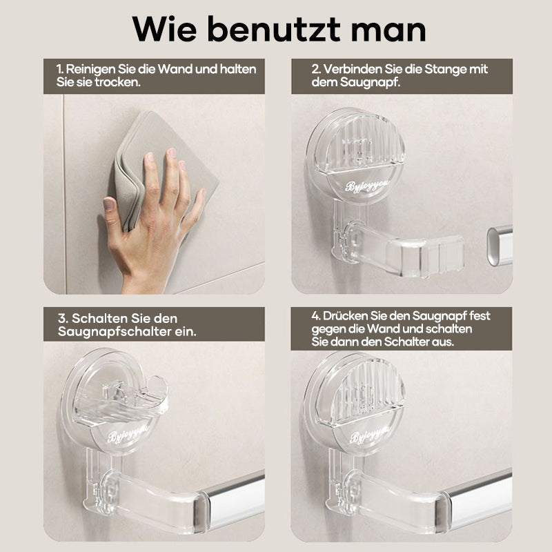 Robuster, rostfreier Handtuchhalter – der Handtuchhalter ist aus hochwertigem, verdicktem Kunststoffmaterial gefertigt. Die Saugnäpfe des Handtuchhalters sind in der Lage, die maximale Belastung festzuhalten und die Saugkraft aufrechtzuerhalten. Beständig gegen Temperaturschwankungen, Rost und Wasser und daher ideal für Nassbereiche wie Badezimmer und Küchen. Leicht zu entfernen und zu waschen.