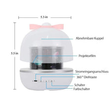 6 OPTIONALE FILME: Bitte öffnen Sie den Deckel oben, um die 6 verschiedenen Themen zu projizieren: Magisches Universum, Ozean-Unterwasser, rotierender Trojaner, Alles Gute zum Geburtstag, Rosengarten, Glücklicher Hirsch. Das schöne Licht wird an die Decke oder Wand projiziert, was eine entspannte Atmosphäre schafft und ein großartiges Nachtlicht für Kinder ist, die vor allem vor dem Schlafengehen Angst vor der Dunkelheit haben.