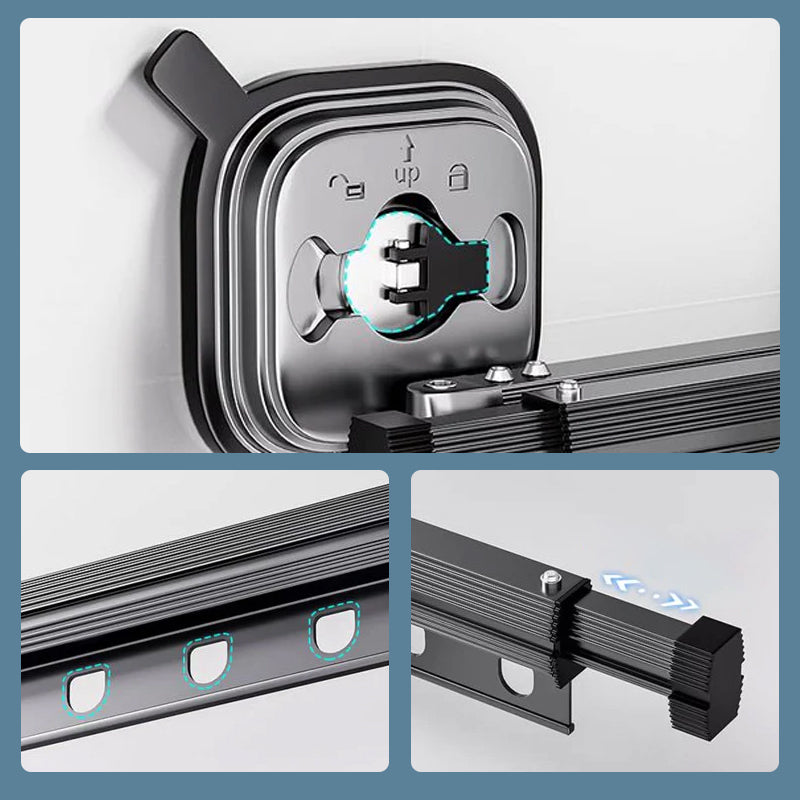 Hochwertige Materialien: Die Wandhalterung für den Wäscheständer besteht aus hochwertigem Space-Aluminium, das sowohl robust als auch verschleißfest ist. Die Oberfläche wird mit mehreren Schichten lackiert und geschützt, um sicherzustellen, dass sie rost- und korrosionsbeständig ist. Der Wäscheständer kann ein Gewicht von mehr als 54kg tragen.