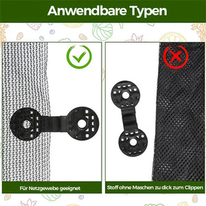 Mehrfachverwendung: Die festen Netzclips eignen sich für alle Arten von Stoffen mit Maschen, Sonnenschutznetz, Wärmedämmnetz, einschließlich Sonnensegel, Vogelschutznetze, Gartennetze, landwirtschaftliche Netze, können nicht nur Pflanzen vor Sonnenlicht und Vögeln schützen, sondern auch bietet eine kühle und sichere Umgebung, in der Sie sich im Garten entspannen können.