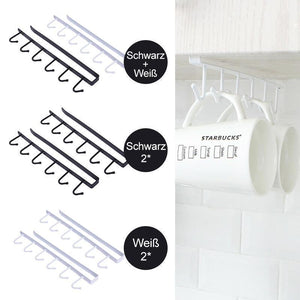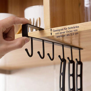Unser Cabinet Haken Regal ist ideal zum Aufhängen von Kaffeetassen oder Kochutensilien. Das Regal lässt sich über jedes Standardregal schieben und bietet sechs stabile Haken für Tassen, Geschirr und andere Küchenprodukte.