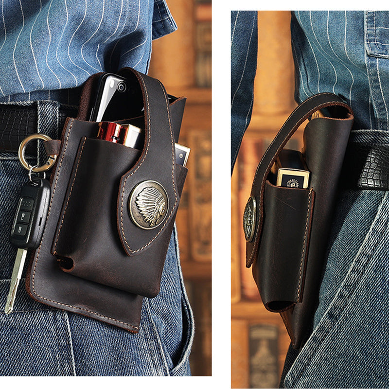 ►Durchdachtes Design - Das Design der vorderen Schutzschnalle sorgt dafür, dass das Telefon und andere Gegenstände fest in der Tasche verstaut werden können. An der Seite befindet sich auch ein Metallhaken zum Aufhängen des Schlüssels, mit dem Sie Ihren Schlüssel schnell finden können.