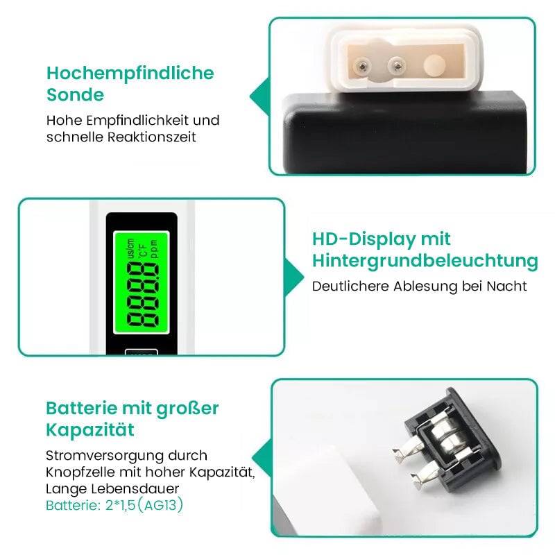 Haben Sie genug von uneinheitlichen Testergebnissen zur Wasserqualität? Unser hochpräziser 2024-Chip und die erstklassigen Titansonden gewährleisten jederzeit genaue und zuverlässige Messwerte. Ergebnisse, auf die Sie sich für Ihre Gesundheit und die Ihrer Familie verlassen können! 👨👩👧👦