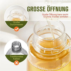 Die große Öffnung kann leicht Öl ohne Trichter einfüllen, und die speziell entwickelte Flaschenöffnung kann die Flasche fest verschließen, um ein Auslaufen zu verhindern.