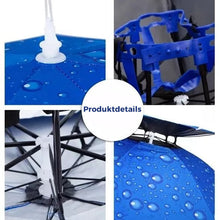 DOPPELSCHICHTIGES DESIGN: Die Oberseite der Regenschirmkappe kann geschlossen werden, um Wind und Regen abzudichten, und wird im geöffneten Zustand belüftet.