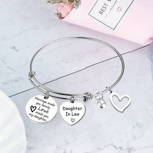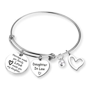 💕Schwiegertochter-Armband: "Die Ehe hat dich zur Familie gemacht, die Liebe hat dich zu meiner Tochter gemacht". Feiern Sie Ihre neue Tochter mit einem Andenken, das sie tragen und schätzen kann, in dem Wissen, dass Sie sie mit offenen Armen in Ihr Leben aufgenommen haben.