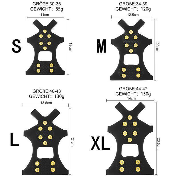 - Einfache Tragung – Leicht in Sekunden die Schuhespikes an und auszuziehen, wegen des Silikon Band braucht das weniger Kraft als andere Schuhe Spikes mit TPE Band