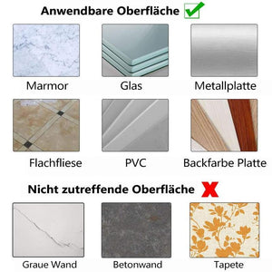 FÜR VIELE OBERFLÄCHEN ANWENDEN - Auf flache, porenfreie, glatte oder polierte Oberflächen wie Glas, Marmorwände, Fliesenwände, polierte Metall- oder Kunststoffplatten usw. auftragen. Die raue, nasse oder lose Lackierfläche wird nicht empfohlen