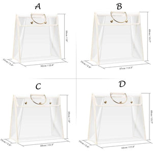 Diese durchsichtige Umhängetasche hilft Ihnen dabei, Ihren Kleiderschrank sauber und ordentlich zu halten. Jede Tasche würde mit einem Haken das Aufhängen erleichtern. Zum Schutz Ihrer Luxustasche vor Staub, Wasser oder Sonnenlicht direkter Bestrahlung.