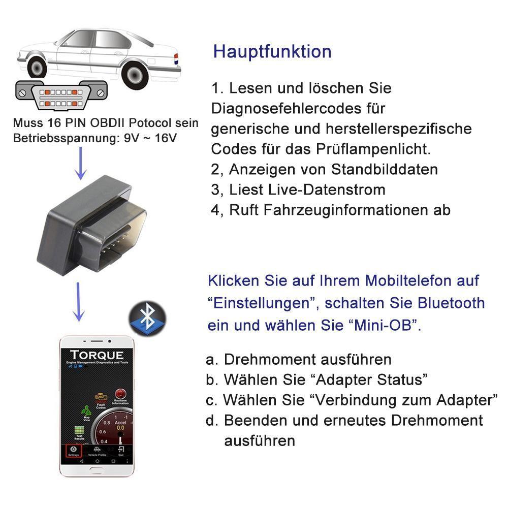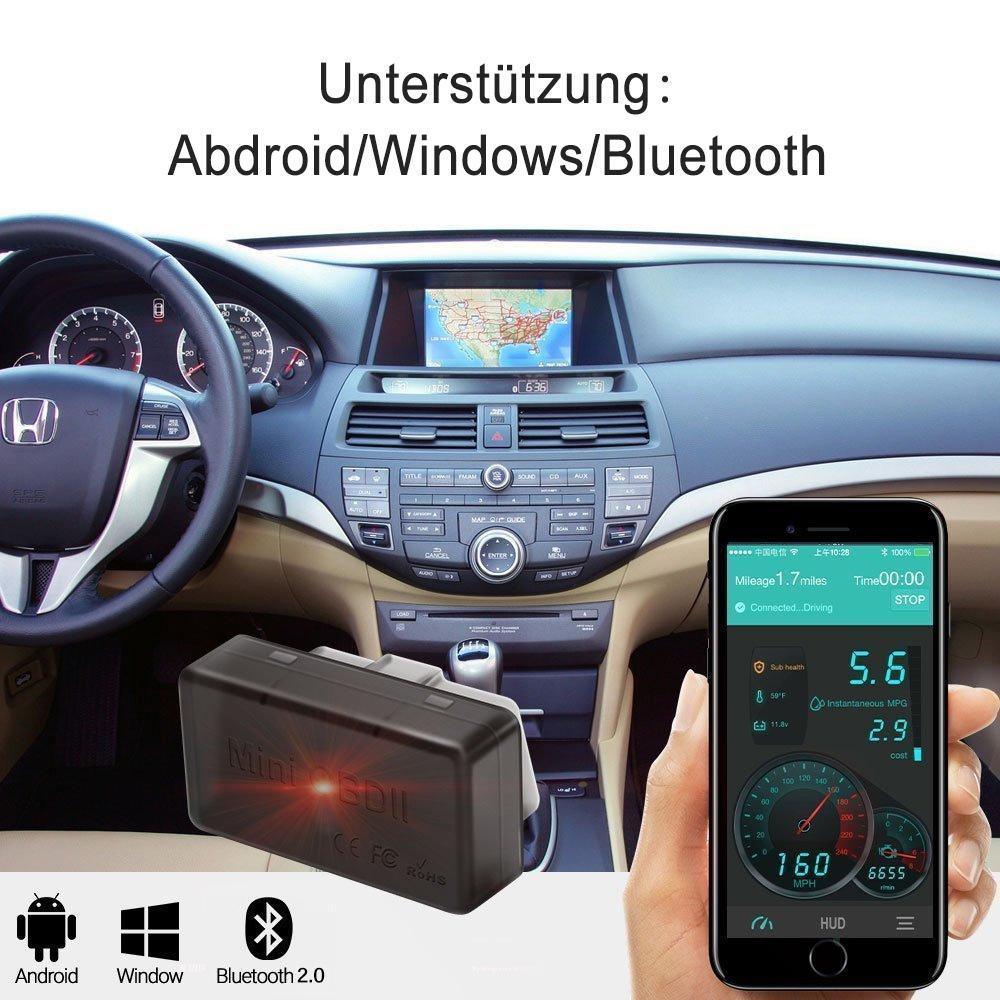 - Bluetooth-Detektor: Für die Diagnose des Autos. Liest Diagnosecodes, sowohl generisch als auch herstellerspezifisch und zeigt ihre Bedeutung, die OBD II Scan-Schnittstelle wird schnell Daten von Ihrem Fahrzeug in Echtzeit zu Ihrem Android & Windows-Gerät senden.