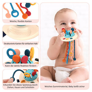 👾100% sicheres Material: Dieses lustige interaktive Spielzeug mit Zugschnur besteht aus lebensmittelechtem Silikon und ABS, 100% sicherem Material, ungiftig, BPA- und phthalatfrei. Einfach zu säubern. Das Silikonspielzeug in Lebensmittelqualität kann die Beschwerden des Babys beim Zahnen lindern, die Emotionen des Babys beruhigen und das Baby kauen lassen.