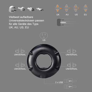 Reisestecker + Universalbuchse + USB-Ladegerät