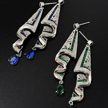 Die Ohrringe hingen wie hübsche Seidenschals und glitzerten mit Saphiren und detaillierten Schnitzereien.