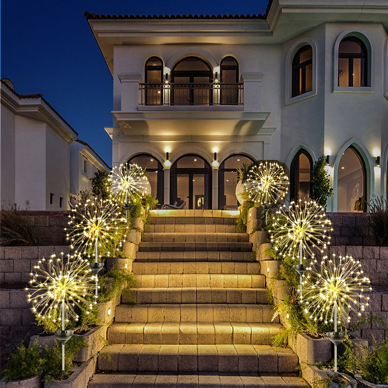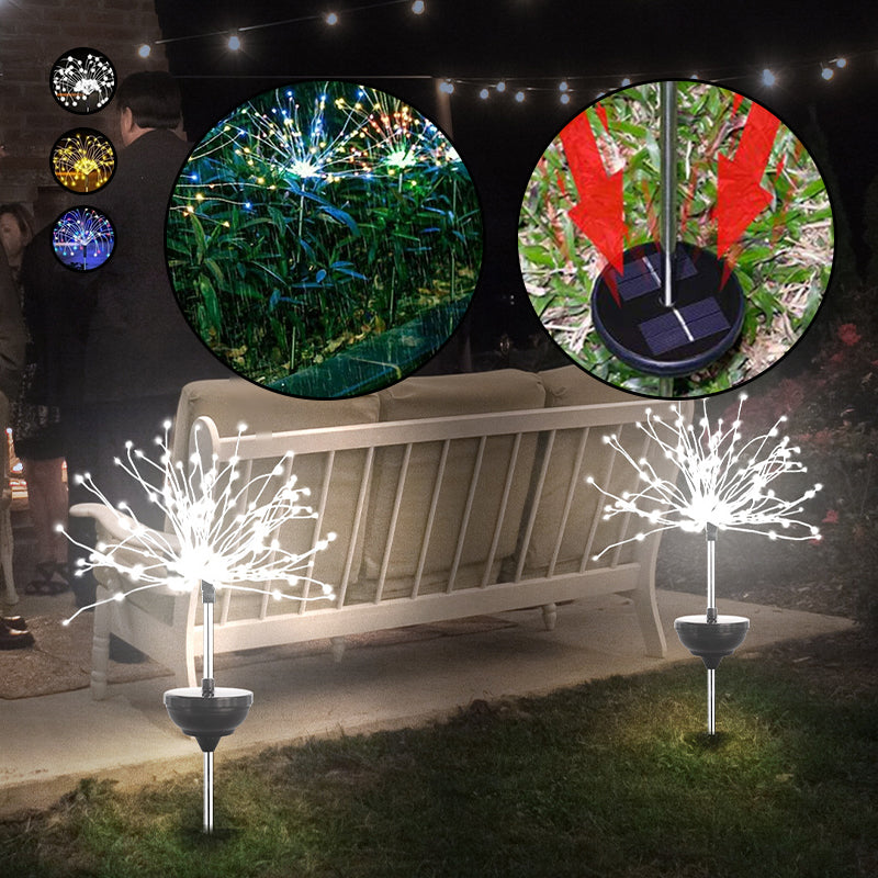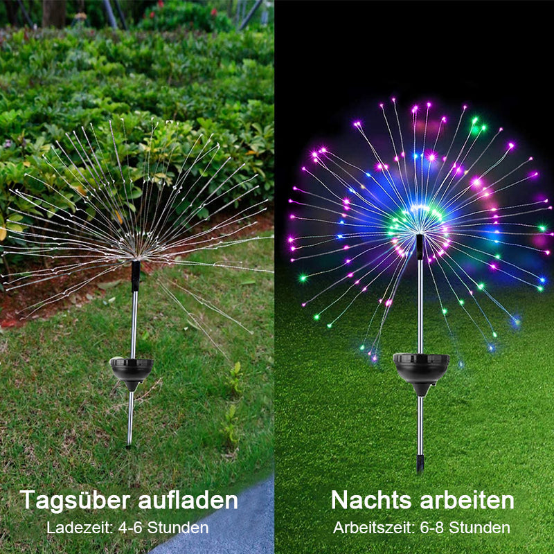 BREITE ANWENDUNG: Das Feuerwerkslicht kann auf Ihrem Garten, Ihrer Terrasse, Ihrem Rasen, Ihrer Hinterhofstraße, Ihrem Swimmingpool und mehr Orten installiert werden, um das gewünschte Ambiente zu erzielen.